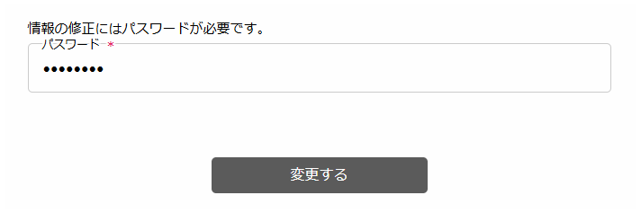 パスワードを入力後、「変更する」をクリックします。 - 確認のモーダル画面で「OK」をクリックすると、画面上に認証コード入力画面が表示されます。