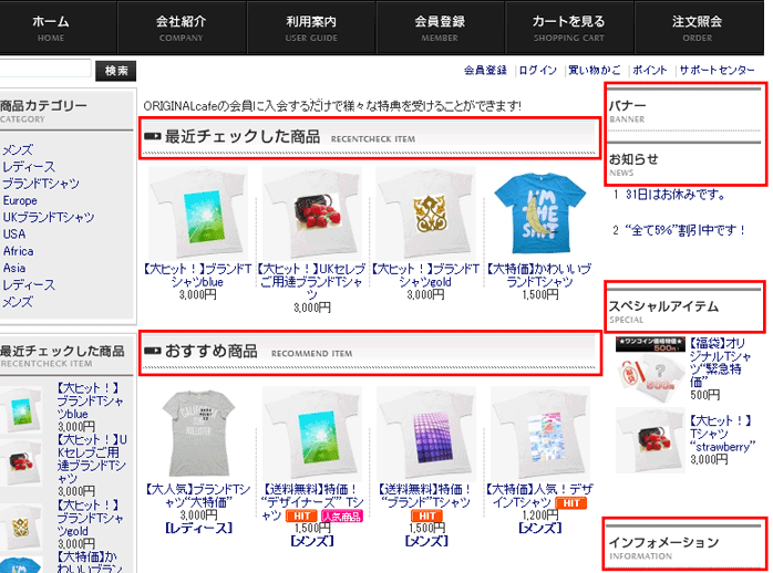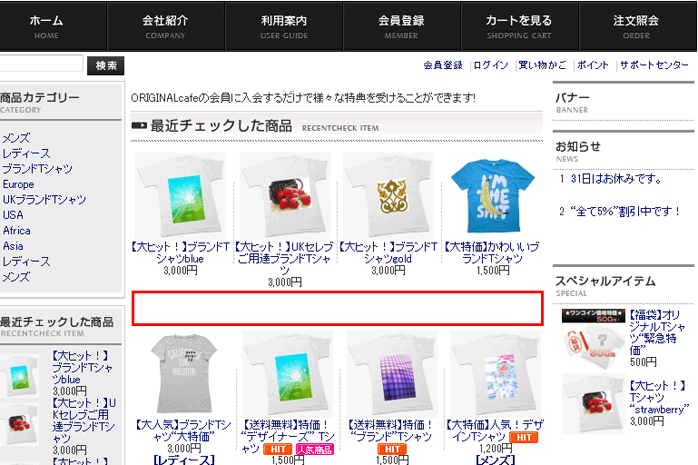 c:「おすすめ商品タイトル画像」に空の画像(spacer.gifなど)を登録した場合の表示例