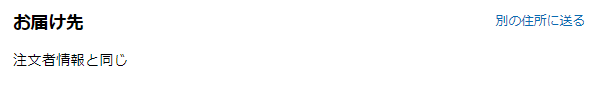 (1)「お届け先」右上に表示される「別の住所に送る」をクリックすると、「お届け先の変更」画面に遷移します。
