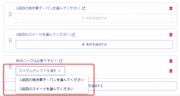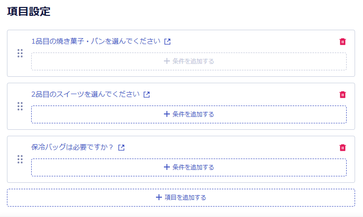 - 削除:項目右にあるごみ箱アイコンをクリックして指定が可能です。