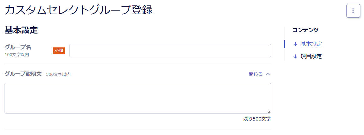 項目設定:3.カスタムセレクトグループ 項目の詳細設定 の内容が表示されます。