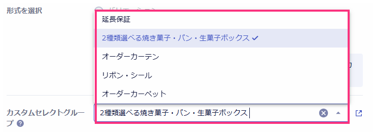 ※カスタムセレクトとオプショングループは同時に使用できません。