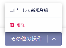 クリックするとモーダル画面に「カスタムセレクトグループ複製 このカスタムセレクトグループを複製してもよろしいですか?複製されたカスタムセレクトグループは「コピー●●●(カスタムセレクトグループ名)」という名前で作成されます。」と表示され、「コピーして新規登録」ボタンをクリックで保存されます。(キャンセルも可能です)